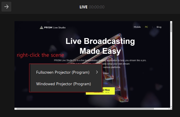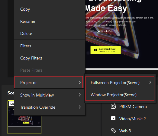 The Source Projector feature displays the LIVE screen and selected scenes in a separate window. As the number of projected scenes increases, so does GPU consumption. If using a low-spec PC, we recommend minimizing the use of Source Projector.