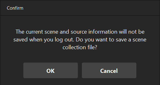If you choose to save the scene collection file, it will allow you to restore your Scenes and sources later. When you log in again, you can easily import your previously saved Scenes and sources using that file. This ensures that your settings are preserved and can be reused across sessions.