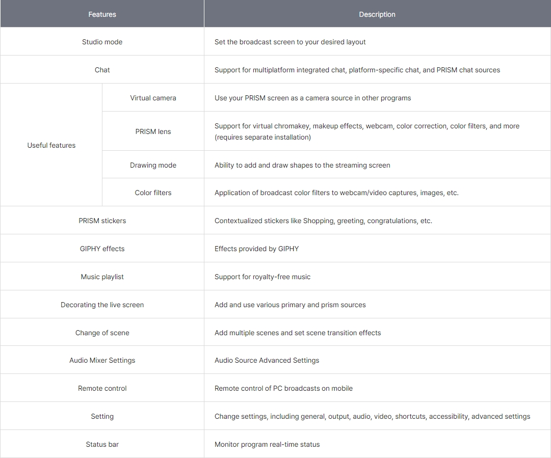 Q: Is additional payment required for the features continually added to the PRISM app? A: No, it is not. Although the PRISM app will continue to add the latest new features for streamers in the future as before, there will be no additional charges for these additions.