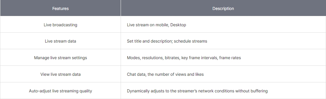 Q: Does it support customization for features specialized in enterprise live services? A: No, it does not. However, integration of functionalities within the common feature scope provided by the PRISM app is possible. For example, integrated streaming methods, title settings, privacy settings, thumbnail settings, etc. Please contact us through the [Contact us] on the product page for more detailed information on the support scope.