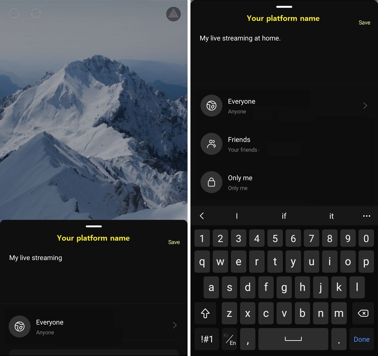 Once the account linking for live streaming is complete, users can proceed to detailed settings for live broadcasts through a menu similar to the one shown in the picture.