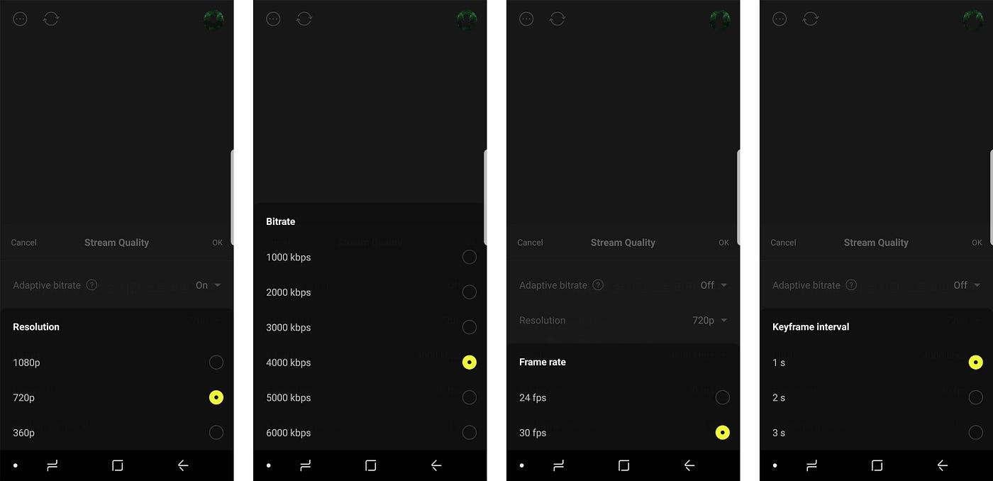 There are four factors that determine video quality: resolution, bitrate, frame rate, and keyframe interval. You can adjust the details of these options in the settings.