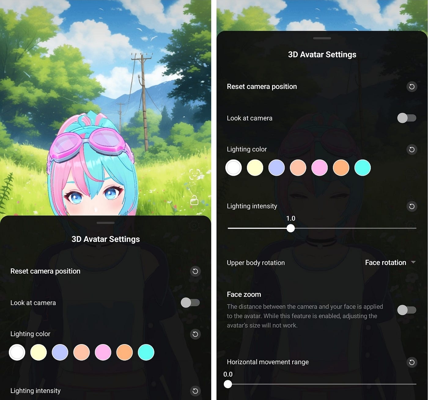 To help you achieve a more natural VTubing experience, the PRISM app’s VTuber feature offers various options. You can position your avatar at the right size and place on the screen, adjust the sensitivity of the avatar’s movements, and fine-tune the lighting’s color and intensity to create an avatar that blends seamlessly with the background.