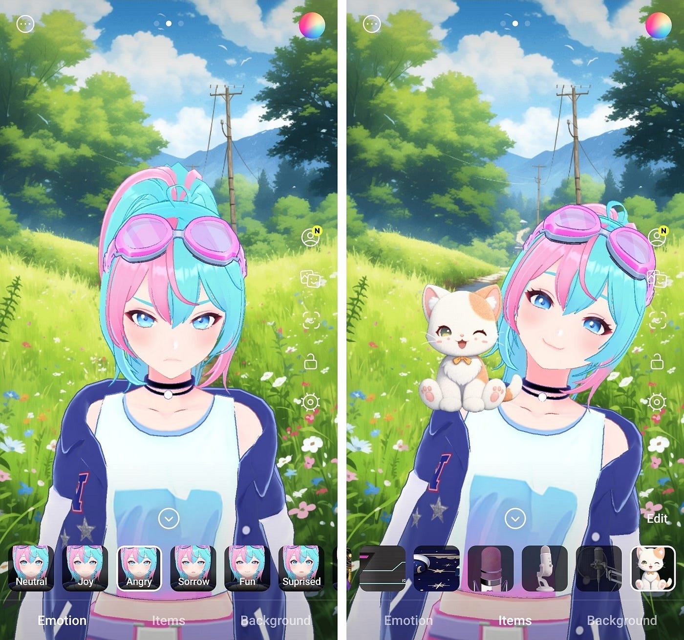 The PRISM app’s VTuber feature applies the user’s facial expressions to their avatar in real-time, while also offering enhanced emotion features such as Joy, Happy, Angry, Sorrow, and Fun to maximize emotional connection with fans.