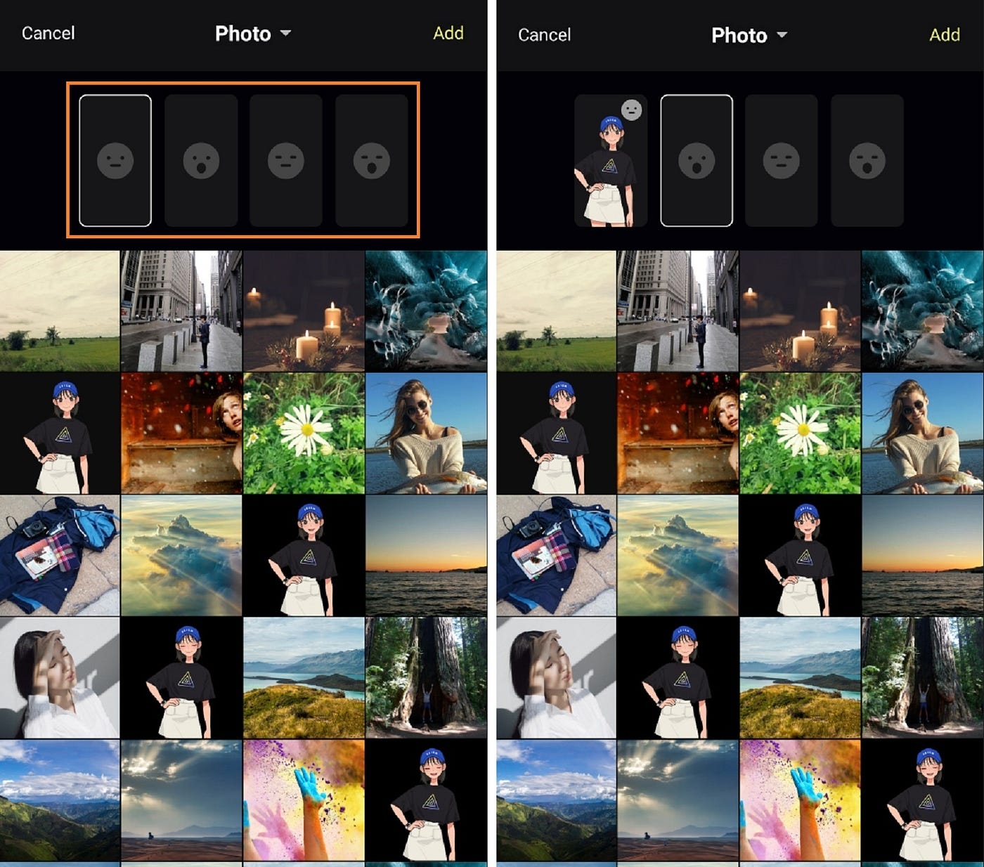 As mentioned earlier, the default characters provided by the PRISM app have five basic emotions: happiness, joy, surprise, sadness, and anger.