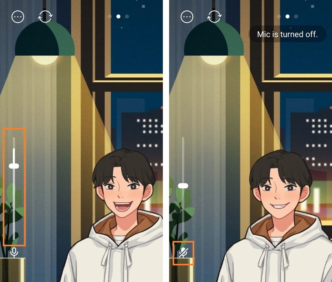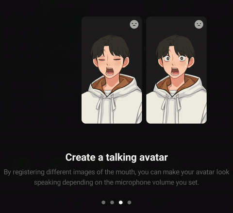 If you switch to the preview tab after registering all 4 status images, you can check the status change in the corresponding emotion in the card. And, using the volume bar fixed on the left side of the card, you can set the voice volume value that reflects the shape of your mouth.
