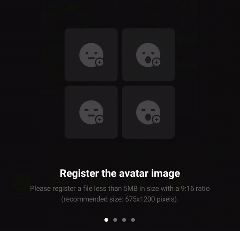 At the very bottom of the screen, you can see the ‘Emotion’ text button. Once you click on it, you can enter the emotion setting screen where you can set the emotion list itself. Click the emotional emoticons at the bottom of the screen one by one and set the status images for each emotion.